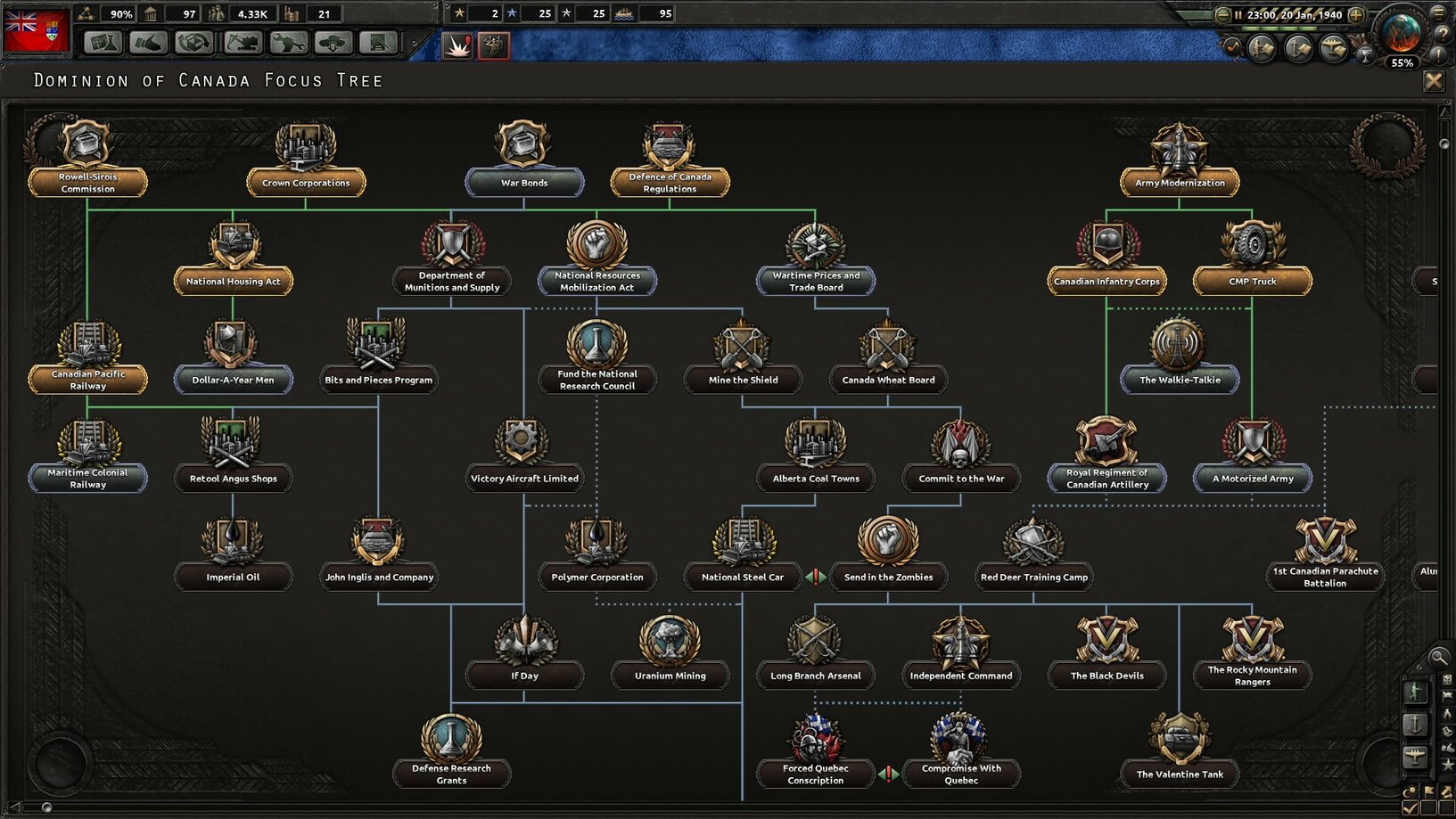 • Alternatywna ścieżka historyczna dla każdego z Dominiów, z możliwością pozostania lojalnymi Wielkiej Brytanii lub ukształtowania nowego, bardziej niezależnego przeznaczenia