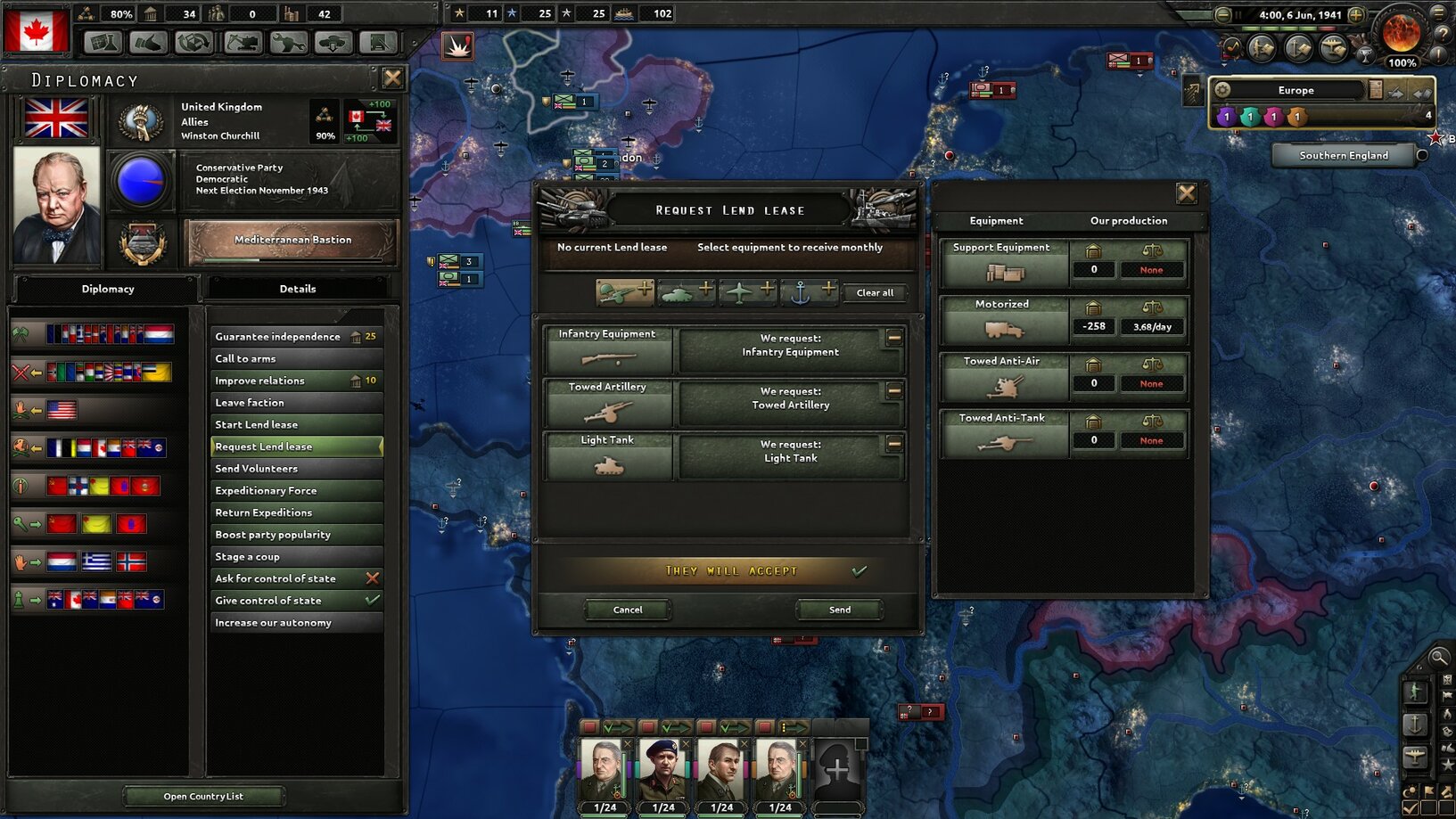 • Zmiany w umowie Lend-Lease pozwalające ci prosić twoich sojuszników o przekazywanie ci desperacko potrzebnego wyposażenia