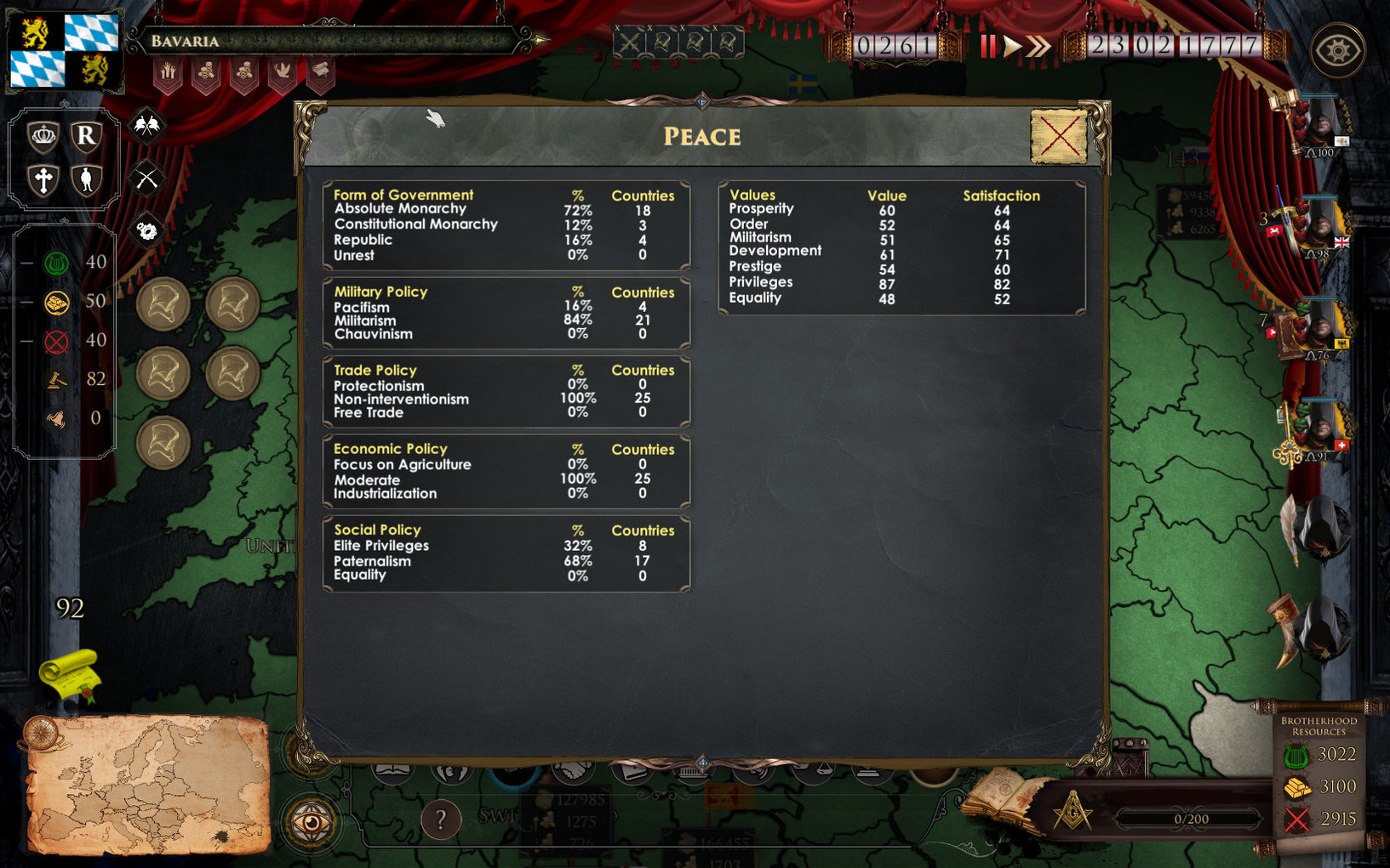 Do Twojej dyspozycji będzie wiele działań dyplomatycznych, ekonomicznych i militarnych. Zwracaj baczną uwagę na politykę wewnętrzną każdego kraju. Jeśli ideologia partii rządzącej jest bardzo różna od poglądów różnych klas i posiadłości, jeśli podatki są zbyt wysokie, a porządek publiczny zbyt niski, to spodziewaj się rewolucji. A może to jest to, czego szukacie?