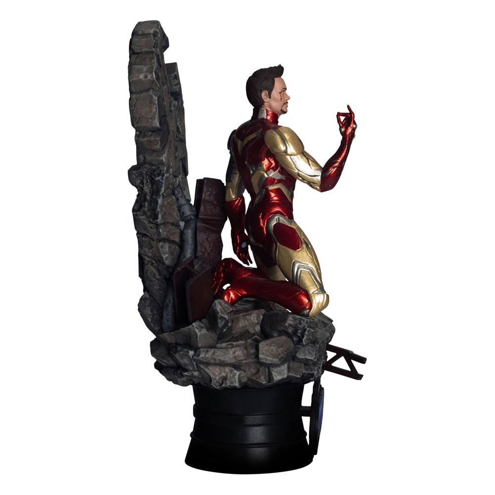 In the now famous pose, Iron-Man in his Mark-85 suit is seen kneeling on the ground, ready to snap his fingers. With all Infinity-Stones in place, the electric current of a thousand stars courses through Tony’s human body, causing cracks in his armor. Accurately re-creating this famous scene the D-Stage-081 matches Tony Stark with a detailed 3D backdrop including a fallen Avengers logo. With his final words of “I Am Iron Man” uttered, the last ever sacrifice from Iron Man was delivered and movie magic was made!