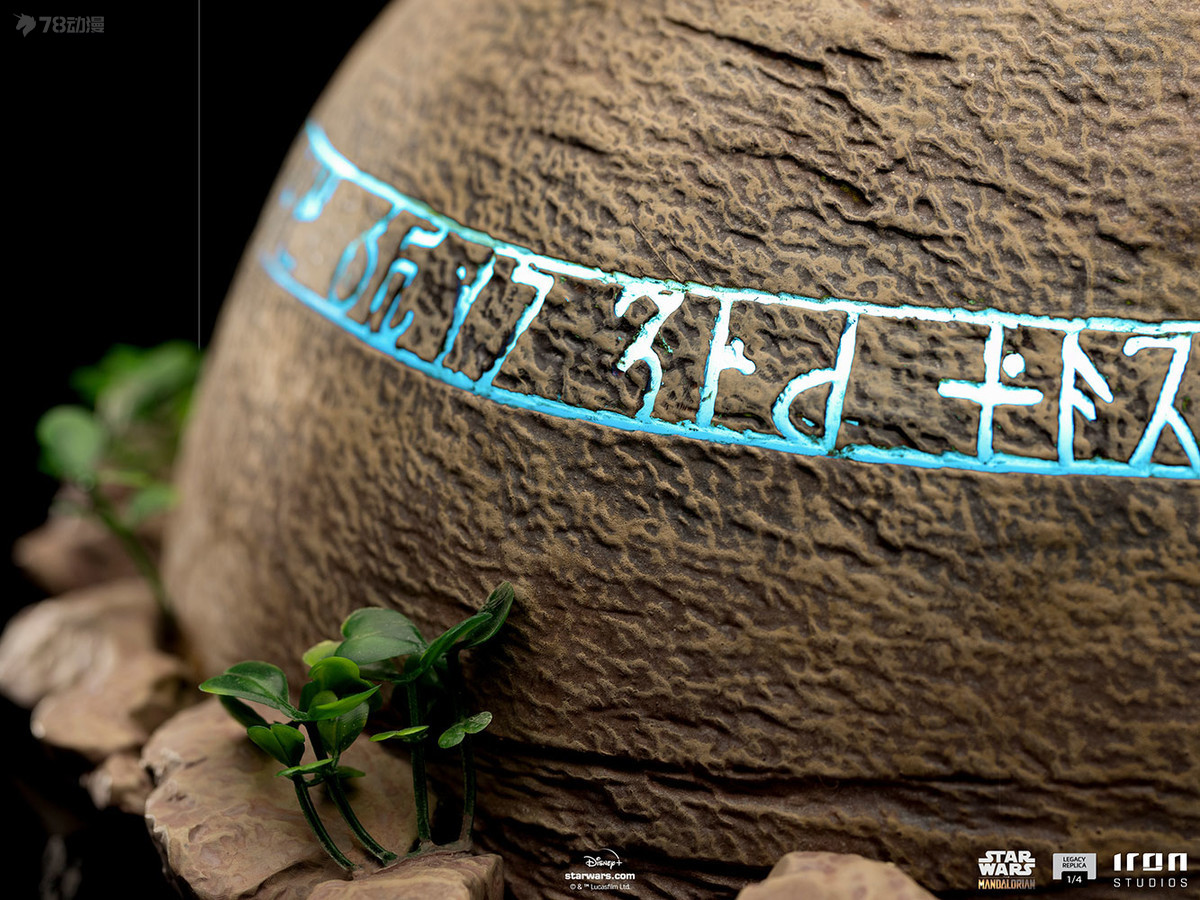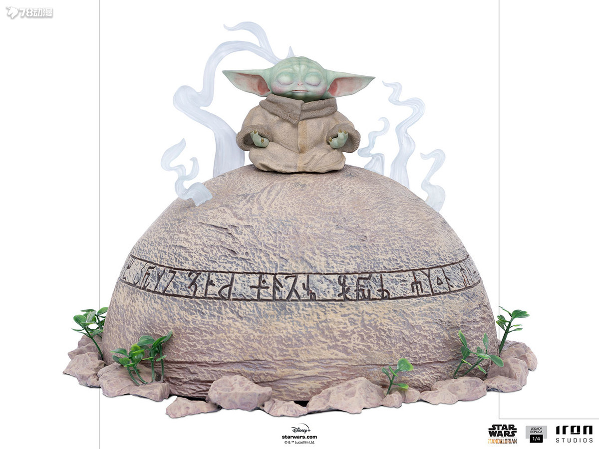 In a trance-like state, having visions or reaching someone or something through the Force, while an energy field forms around him, the little child called Grogu (Baby Yoda) remains seated on top of the so-called Seeing stone. This rock is shaped like a dome in the ancient ruins of a temple, with runes inscribed at the bottom, where it says that if a Force-sensitive being meditates on its top, it will send a beacon of energy to any other Force-sensitive being nearby. Thus, Iron Studios presents its statue “Grogu Legacy Replica 1/4 – The Mandalorian – Iron Studios” derived from this iconic scene from the second season of the series The Mandalorian, a spin-off from Star Wars. The Mandalorian is a production of the Disney+ streaming channel, directed by Jon Favreau.