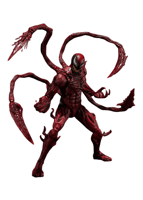 The symbiote Carnage, from “VENOM: LET THERE BE CARNAGE,” joins S.H.Figuarts! Featuring giant proportions matching the dramatic appearance of the character onscreen, it stands 215 mm tall, eclipsing even the S.H.Figuarts Venom (sold separately)! Distinctive crimson veins and silhouette are faithfully captured in the sculpt. And of course, it boasts all of the dynamic posability you’ve come to expect from the S.H.Figuarts series!