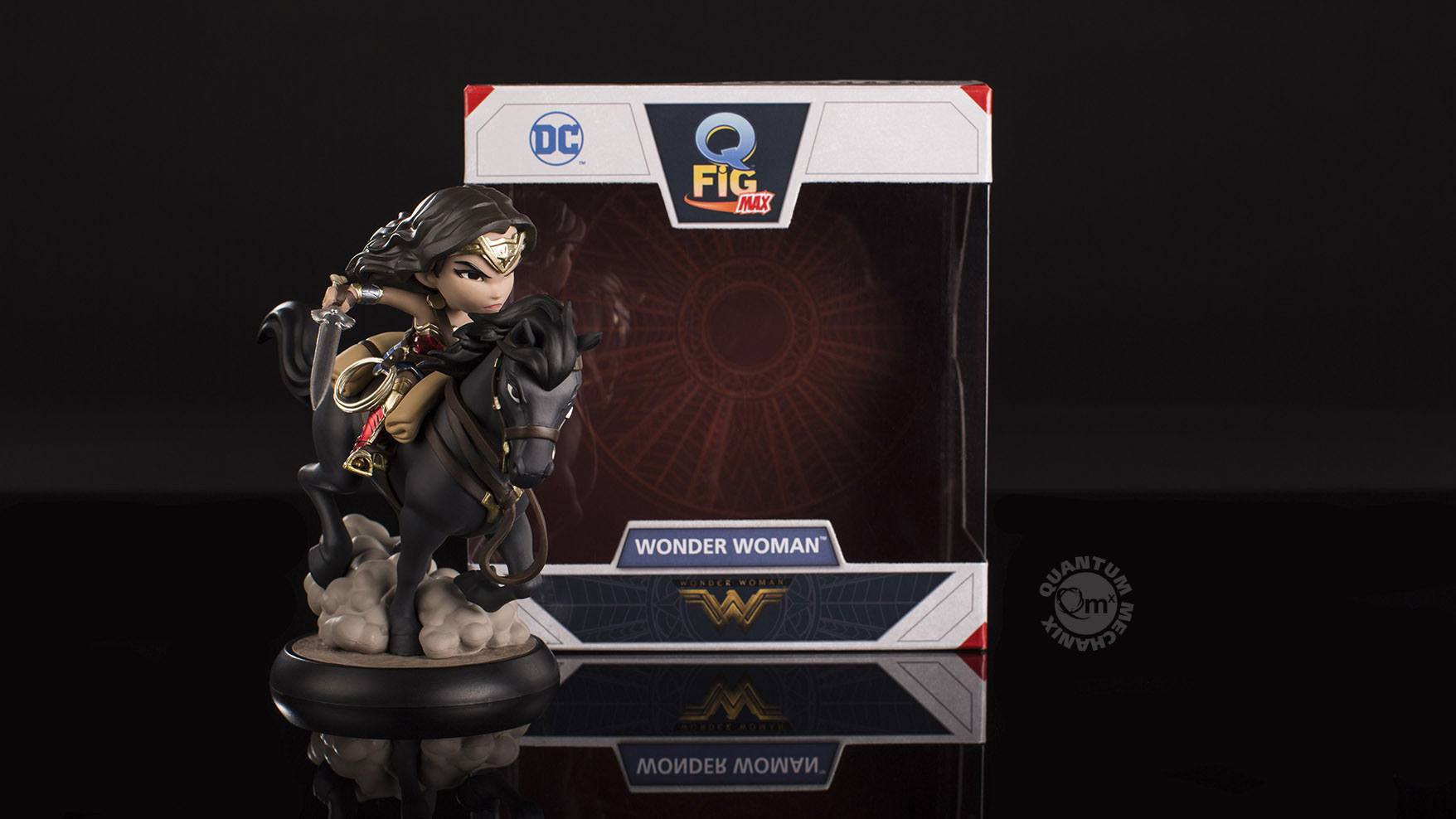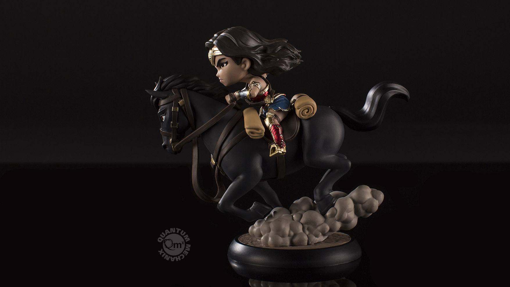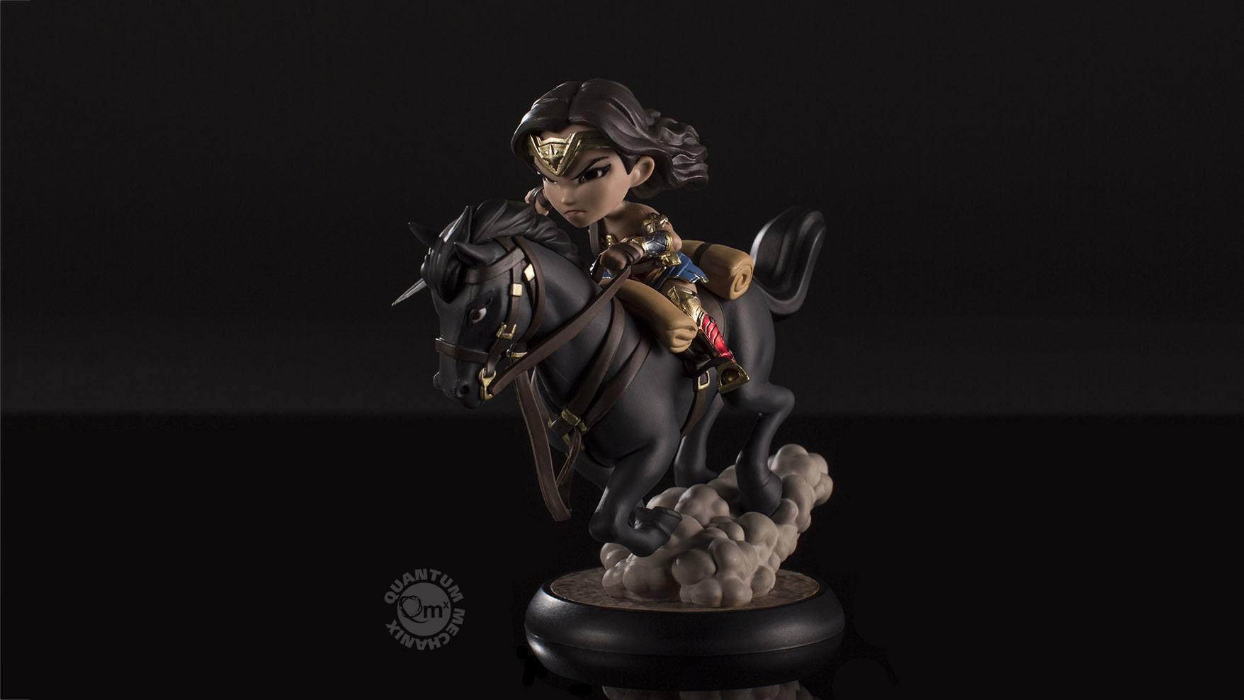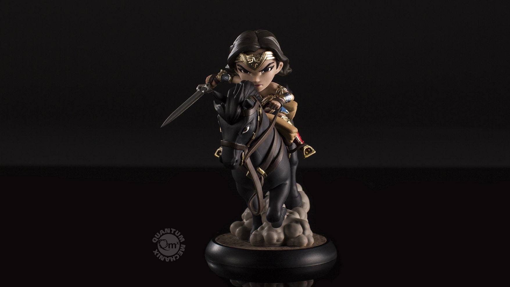 Szczegółowy opis w języku angielskim:Steely eyed and fully armed, Wonder Woman rides her ebony steed into battle in this magnificent Q-Fig Max figure from QMx.