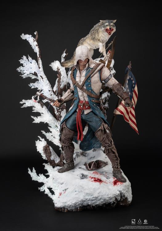 Our Assassin’s Creed: Animus Connor ¼ Scale Statue features the LED lit animus transition on a snowy rock bluff. In his hand he holds his iconic tomahawk and behind him stands a mystical wolf: his fierce spirit animal. Seventh in the Animus collection, Connor is our most idealistic and endearing Assassin to date!