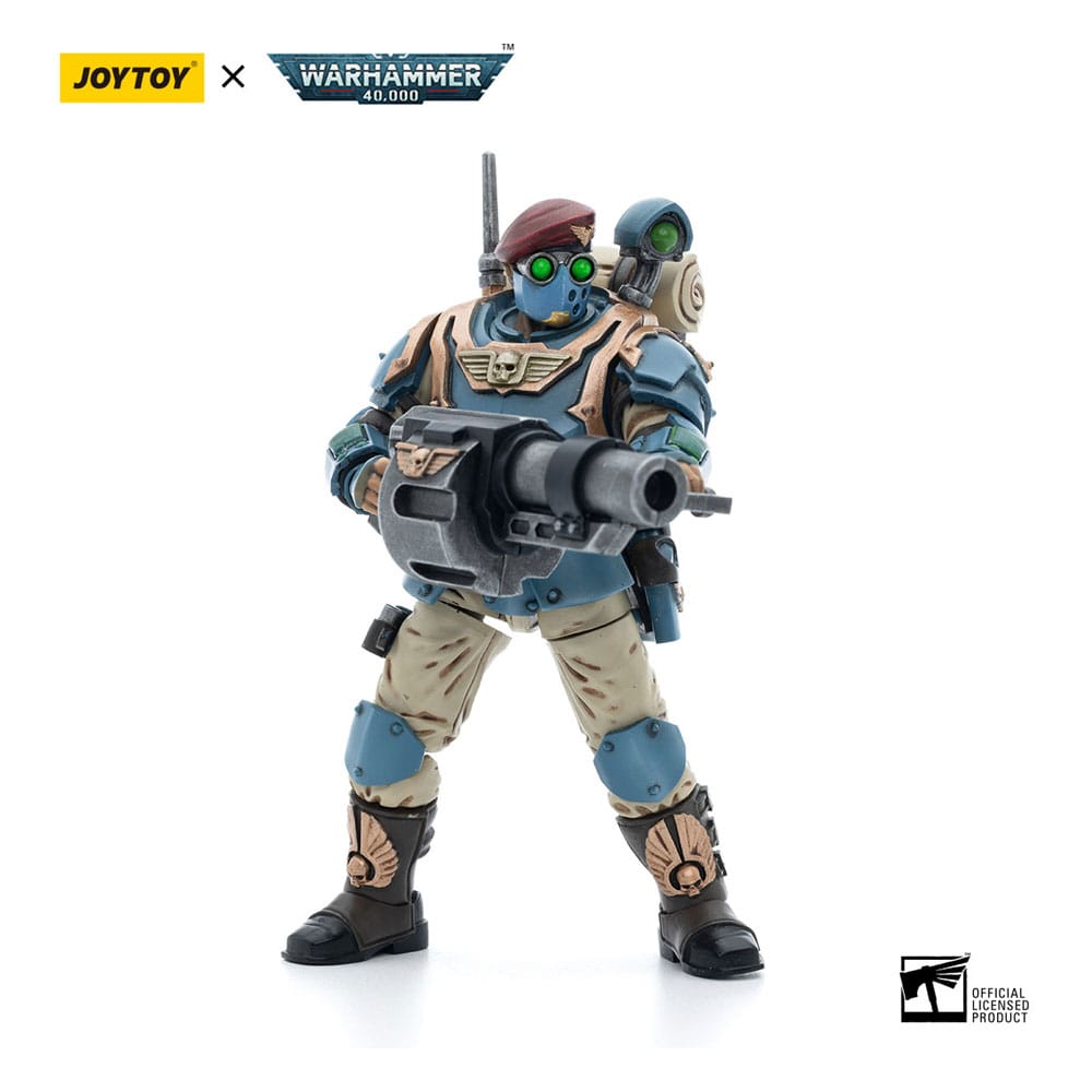 JoyToy prezentuje kolekcjonerską figurkę przedstawiającą postać “Astra Militarum Tempestus Scions Command Squad 55th Kappic Eagles Grenadier” z uniwersum “Warhammer 40K”.
