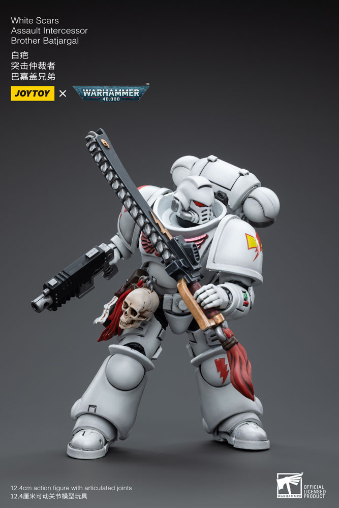 JoyToy prezentuje kolekcjonerską figurkę przedstawiającą postać “White Scars Assault Intercessor Brother Batjargal“ z uniwersum “Warhammer 40K”.