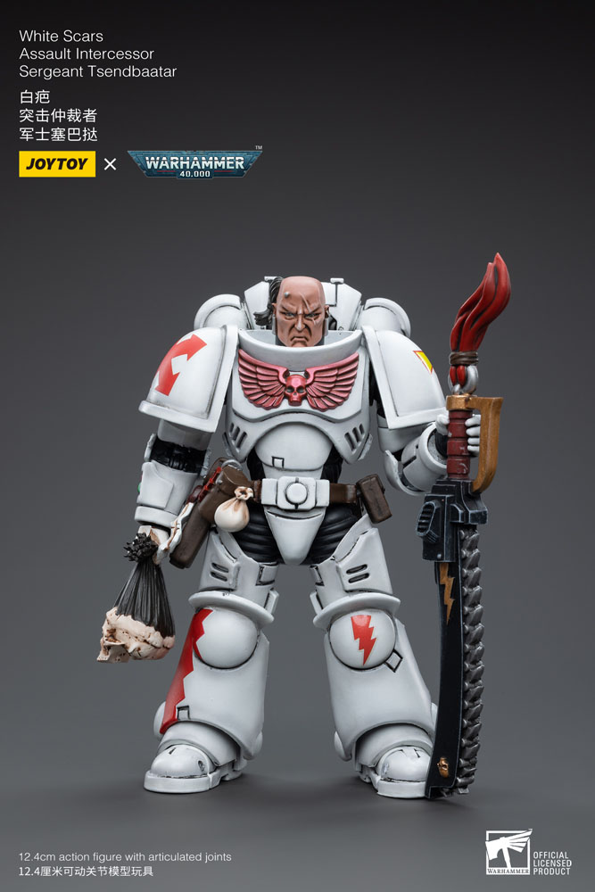 JoyToy prezentuje kolekcjonerską figurkę przedstawiającą postać “White Scars Assault Intercessor Sergeant Tsendbaatar“ z uniwersum “Warhammer 40K”.
