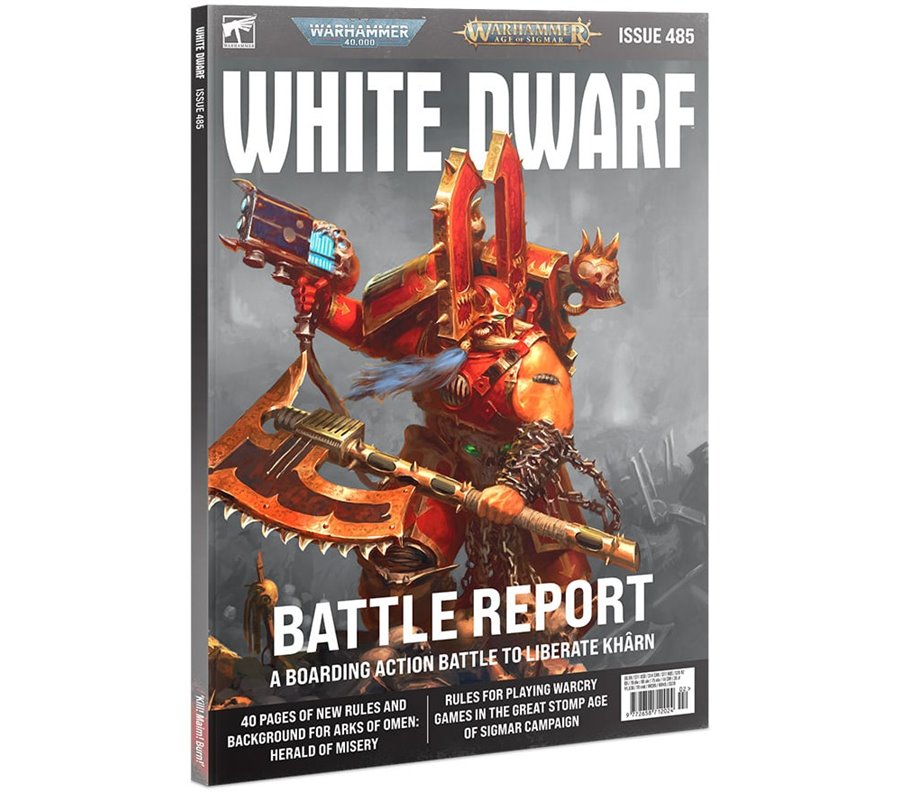Each physical copy of issue 485 comes with six double-sided Void Siege tiles for Boarding Actions games, a White Dwarf Paint Recipe card, eight Grinkrak’s Looncourt Fighter and Ability Cards for Warcry, and a new Achievements card for the Great Stomp campaign.