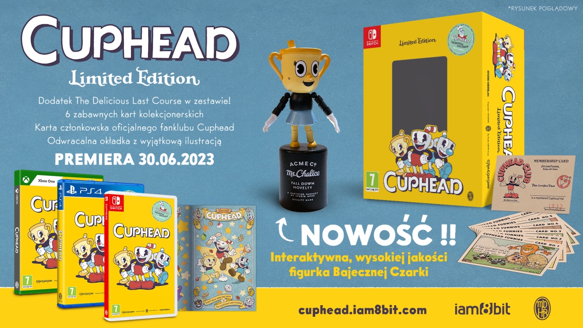 Ale to nie wszystko! Ta hałaśliwa edycja pudełkowa zawiera niezwykle popularne DLC „The Delicious Last Course” od razu na płycie/kartridżu, oferując graczom mnogość dodatkowych bossów, zdumiewającą broń i ozdoby oraz zupełnie nową grywalną postać: Bajeczną Czarkę. Do tego zestaw uroczych pakunków, z uczuciem przygotowanych przez artystów ze Studio MDHR, razem daje ci najpełniejsze doznanie Cuphead w historii, idealne zarówno dla długoletnich fanów, jak i nowicjuszy!