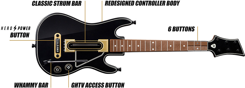 W Guitar Hero Live cztery kolorowe przyciski zostaną zastąpione dwoma rzędami po trzy klawisze. Oznacza to nowy kontroler i brak kompatybilności wstecz.